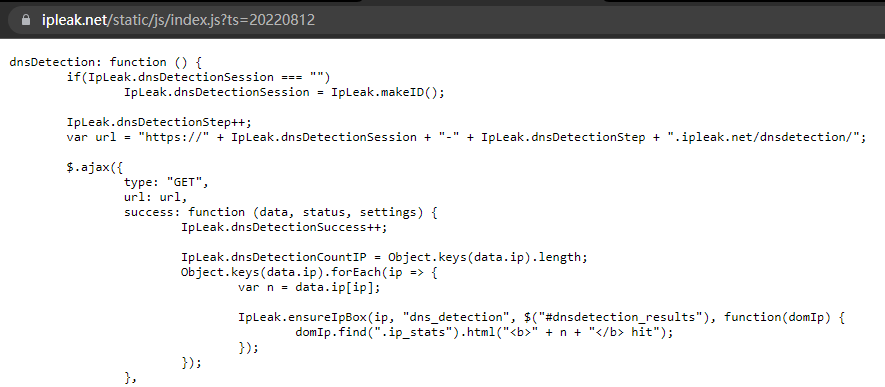 DNS泄露檢測網(wǎng)站的關鍵部分代碼: