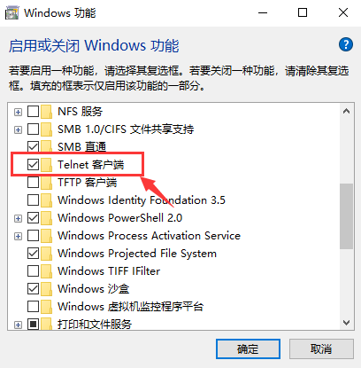 勾選 Telnet客戶端,點(diǎn)擊確定